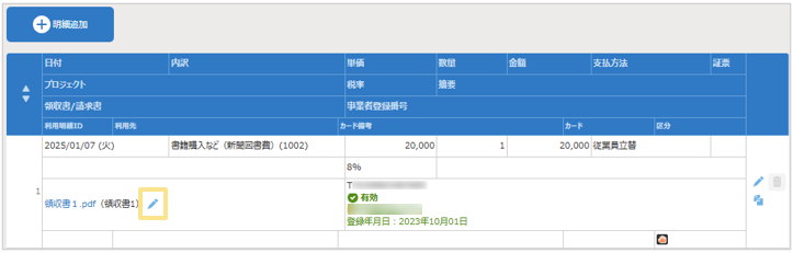 - 修正したい領収書/請求書の「鉛筆マーク」をクリック