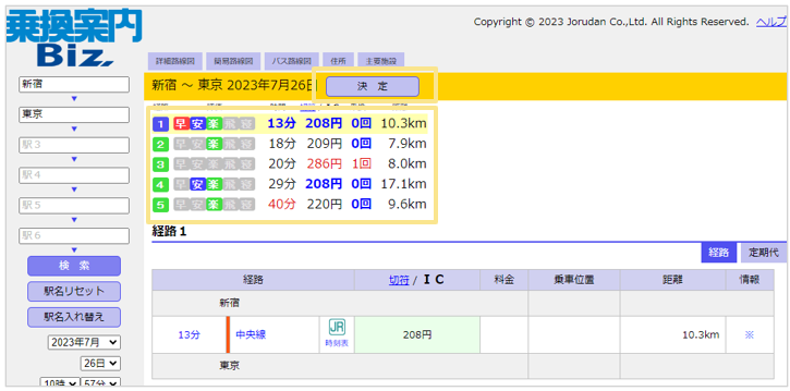 新宿駅→東京駅への移動した場合の交通費の経費精算