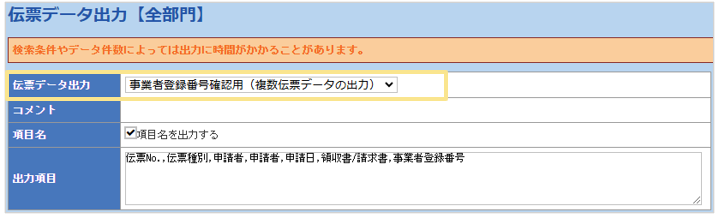 2.「メインデータ」は「複数伝票データの出力」を選択