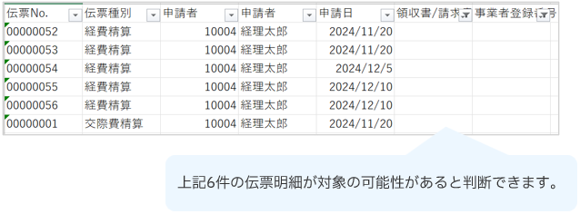 ※対象伝票を特定しやすくするため、以下項目も追加することをおすすめいたします。
