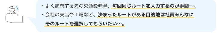 社員全員が同じ出発地、到着地を簡単に入力することができる。といったご活用方法があります!
