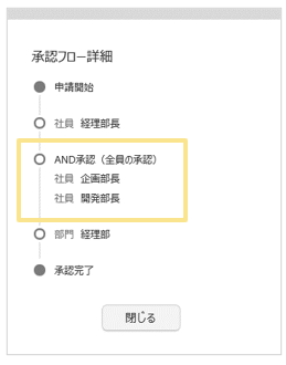 下記画像の例では「企画部長」と「開発部長」はAND承認です。