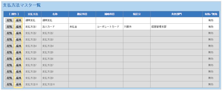 ▶支払方法マスタの設定