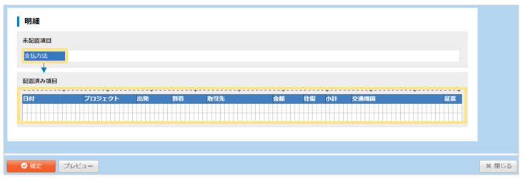 7.「未配置項目」にある項目をドラッグ&ドロップで枠内に移動
