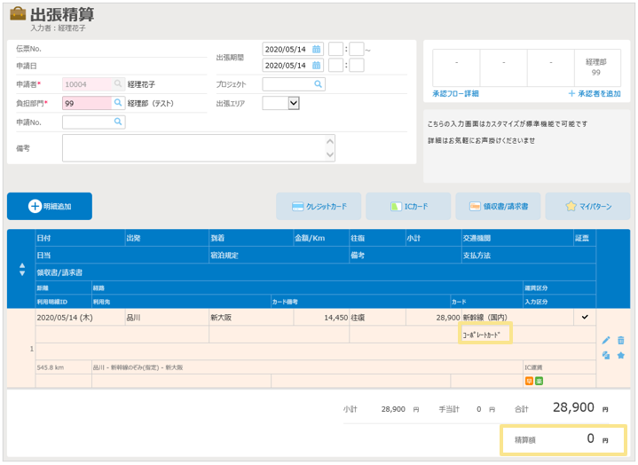 金額は精算額には反映されません。