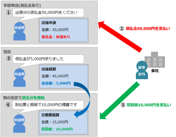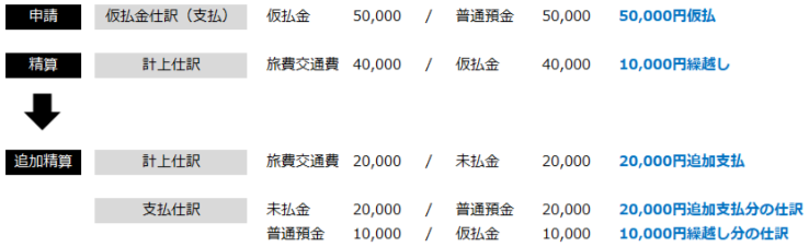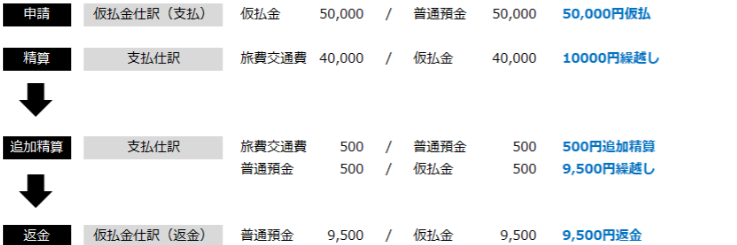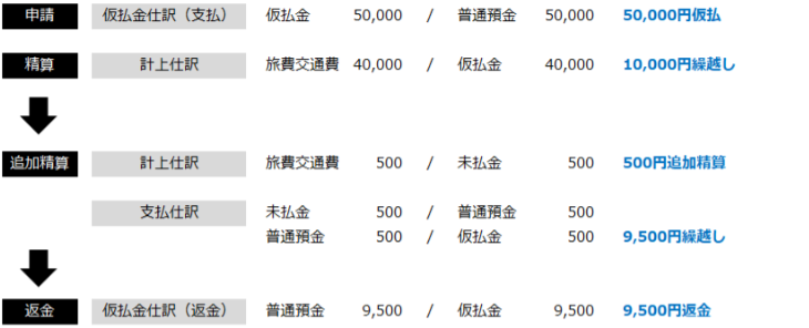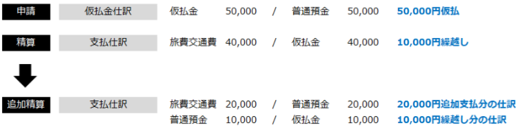 はじめて、④以降の精算にて、精算する金額と仮払金の繰越分を相殺した金額が反映されます。