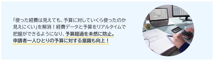 申請時点で申請者が予算超過前に実績を把握することが可能に。