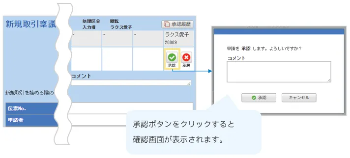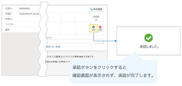 承認ボタンをクリックすると、確認画面が表示されず承認が完了します。