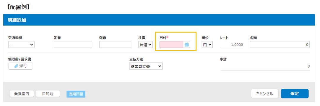事象1:「日付」項目が入力された状態で明細内「添付」ボタンから領収書/請求書を添付した場合、