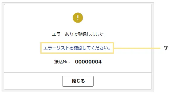 エラーが出た場合、インターネットバンキングのシステムに取り込んでもエラーとなります。