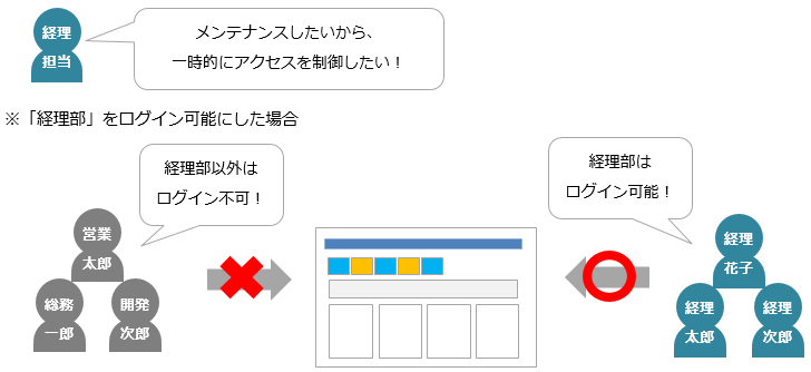 【例】「経理部所属のユーザーのみアクセスを許可する」など - admin(管理者ID)は「排他ロック」の対象からは外れます。
