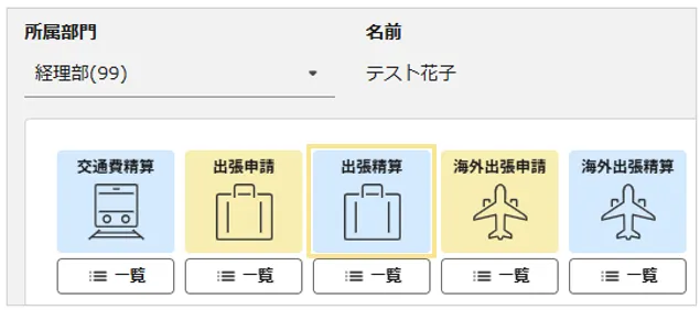 1.「出張精算」など精算したい申請種別のアイコンをクリック