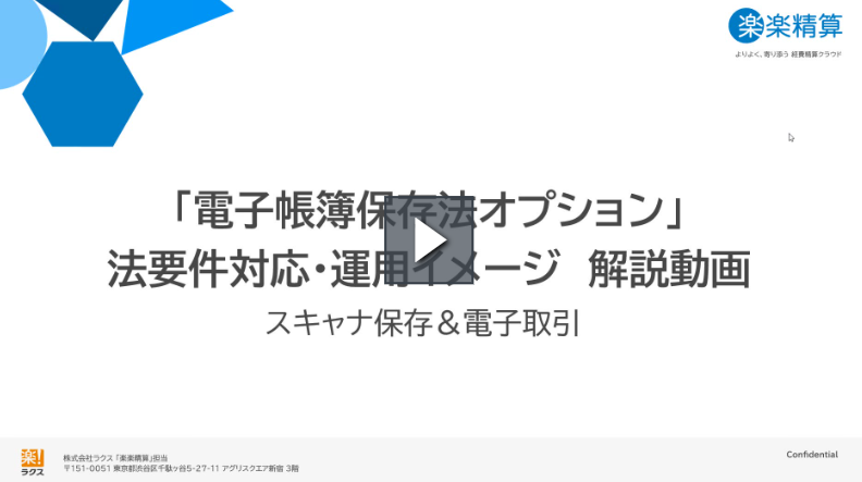 トップ > 電子帳簿保存法 > 電帳法:お役立ちコンテンツ > 電帳法対応・運用イメージ解説動画 楽楽精算CS 2023/01/01 09:00 電帳法対応・運用イメージ解説動画 「楽楽精算」の「電子帳簿保存法オプション」を利用して、電子帳簿保存法に対応する際の対応・運用イメージをまとめた解説動画をご用意しています。※動画内の解説資料のダウンロードもいただけますので是非ご覧ください。 電子帳簿保存法オプション法要件対応・運用イメージ解説動画※電子取引のみに対応の場合約8分・音声あり 電子帳簿保存法オプション法要件対応・運用イメージ解説動画※スキャナ保存/電子取引の両方に対応の場合約15分・音声あり (記事ID:4015) いいね 共有する 共有する リンクをコピー