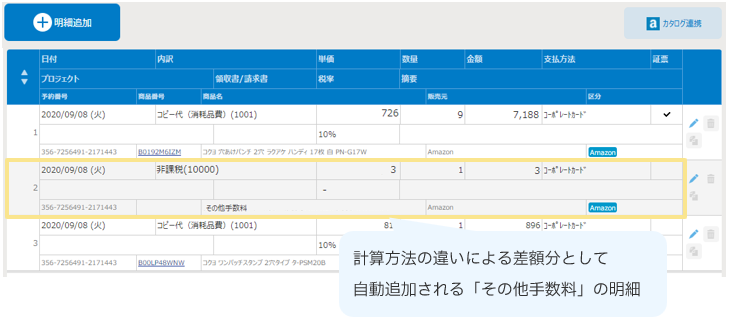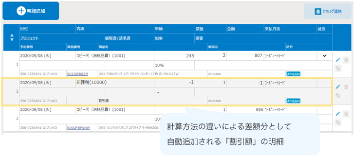 ▶対応方法2:差額が発生し自動で明細が追加された場合の対応