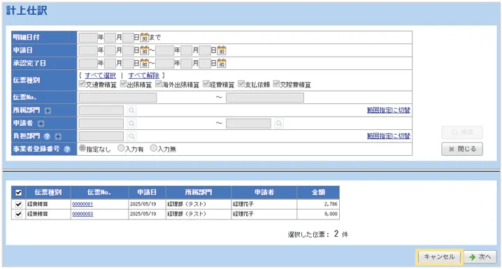 ・計上仕訳画面