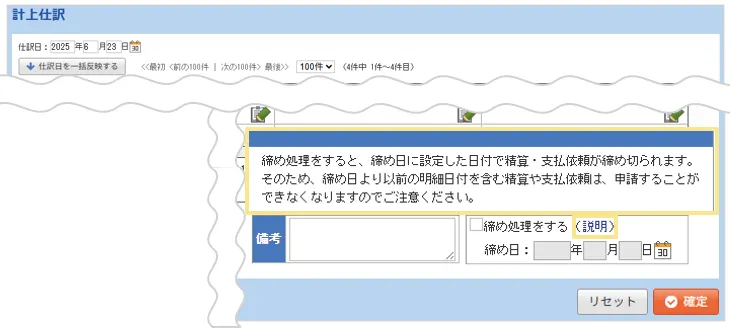 「経理処理」タブ内の以下画面