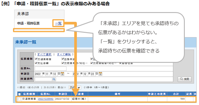 「未承認」エリアに承認待ちとして表示されませんのでご注意ください。