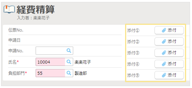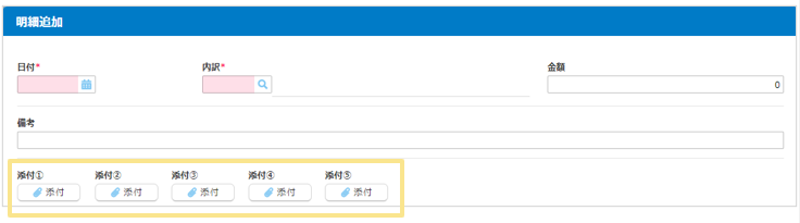 ヘッダで5つ、各明細行ごとに5つのファイル添付可能!
