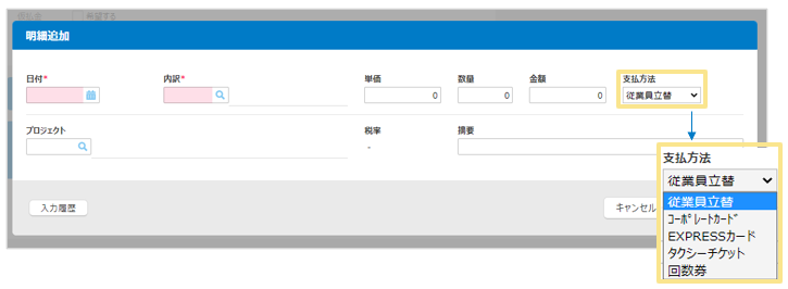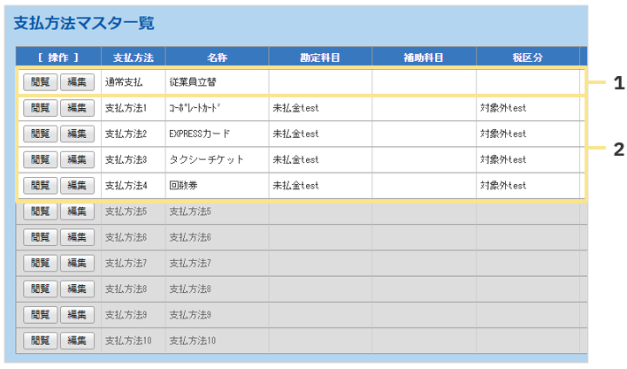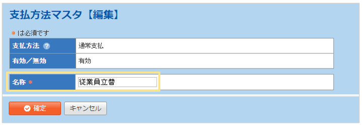 - 支払方法マスタで登録した内容を従業員ごとに表示・非表示の制御をすることは