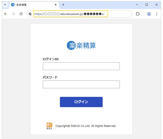 「楽楽精算」の環境URLはお客様ごとに異なるため、