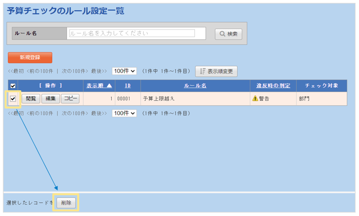 「予算チェックのルール設定」を削除する方法で回避するかにつきましては、