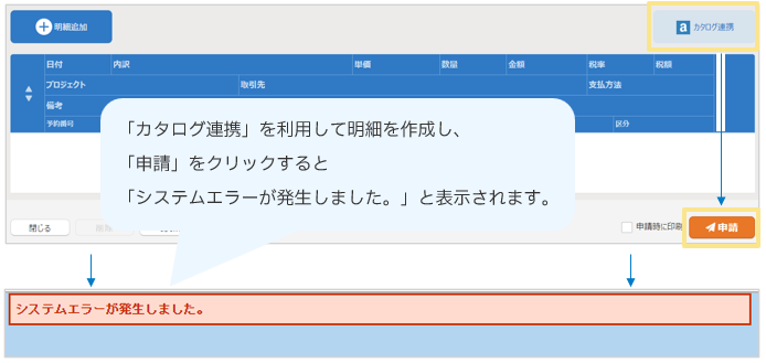 「楽楽精算」の「経費申請 > カタログ連携」を経由せず、