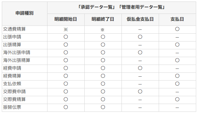 ※交通費精算は、すでに明細開始日、明細終了日の検索/表示設定が可能です