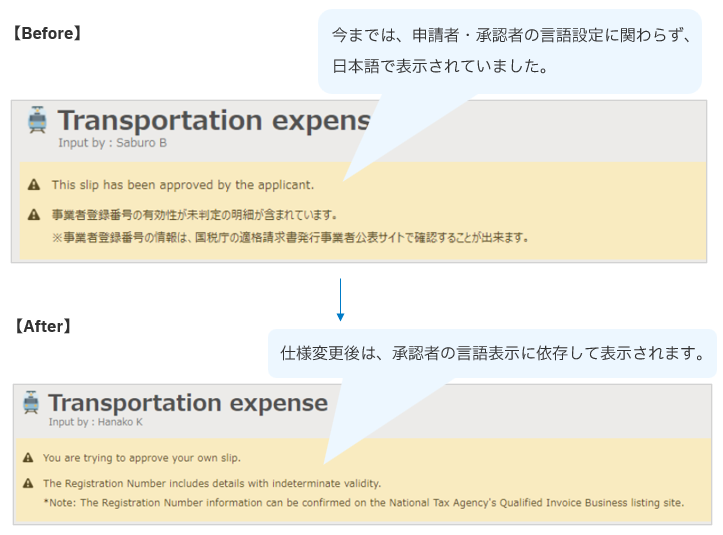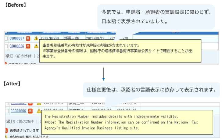 ■新機能追加 1. 「電子帳簿保存法オプション」二重申請防止のアラート機能を追加 2. 「閲覧」タブ > 各種一覧画面に検索項目を追加 ■仕様変更 3. 「部門マスタ」の登録上限数を20,000件に増加 4. 「英語対応オプション」特定の警告メッセージにおいて英語表示に対応 ■補足 |