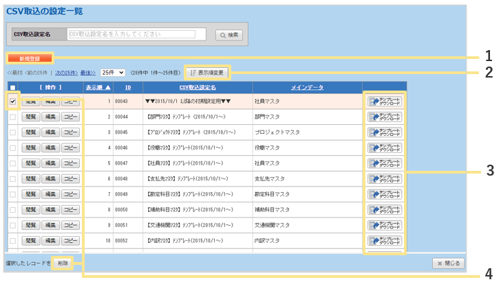 - マスタ情報をCSVファイルで一括更新(新規作成)するためのフォーマットを作成します。