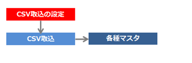 実際にマスタ情報をCSVで取り込む際は、「管理」タブ >「CSV取込」から行います。
