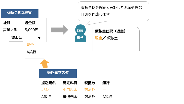 ■「仮払金仕訳(返金)」で作成される仕訳
