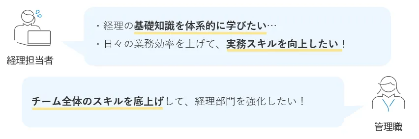 このように、経理部門のスキル向上や部下の育成に課題を感じている経理担当者や管理職の方も