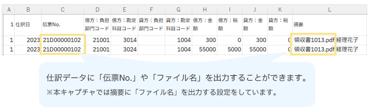 これらは、「仕訳データ出力」機能、および「伝票データ出力」機能にて出力できます。