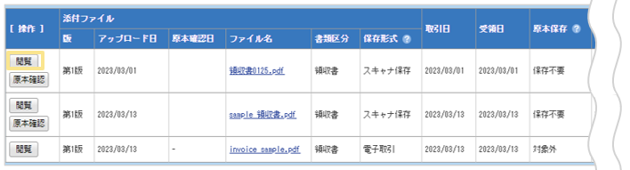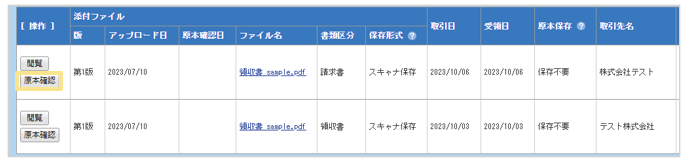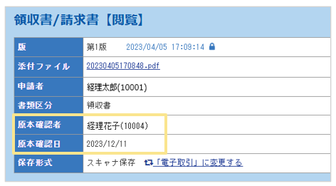 また、「原本確認」ボタンは保存形式が「スキャナ保存」または「未指定」の場合にのみ