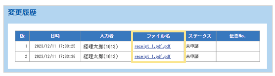 領収書のPDFファイルを更新した場合、更新前の領収書/請求書データは