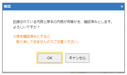 4.確認ができたら「原本確認」ボタンをクリック