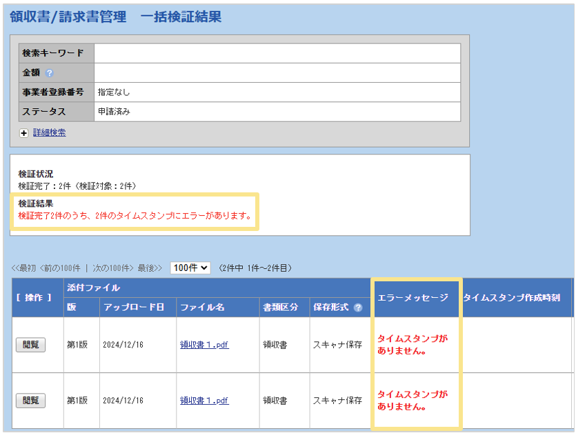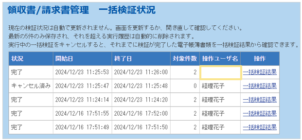 検証完了した件数のうち、エラーとなった件数が「検証結果」に表示されます。