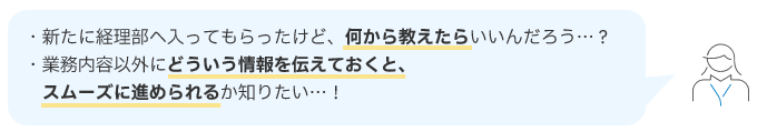 経理部に新たなメンバーが入ってきたとき、どういう内容を伝えるとスムーズに