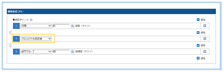 「プロジェクトの承認者」を承認フローに追加します。