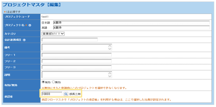 「プロジェクトマスタ」で承認者が未設定のプロジェクトを選択しても申請時エラーに
