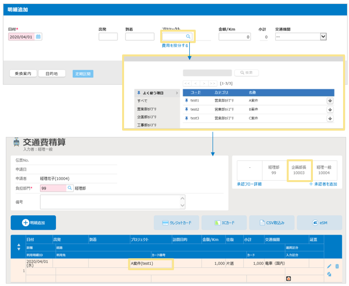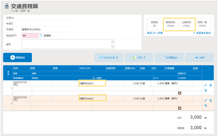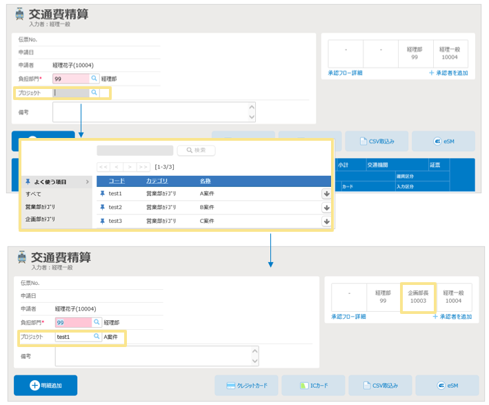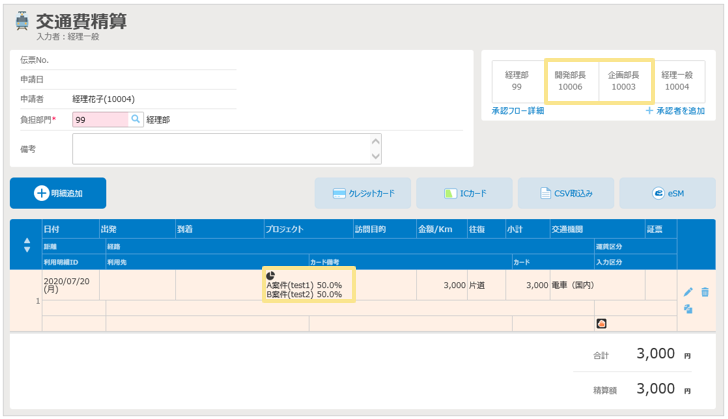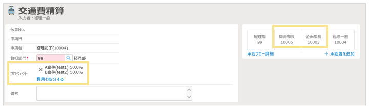 ※明細の「プロジェクトの承認者」が、自動的に承認フローに追加されます。