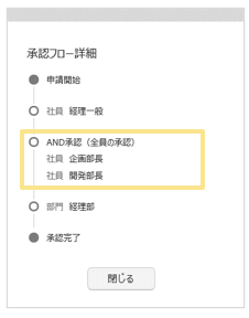 ・「プロジェクトの承認者」を設定した場合、前後の承認ポイントとの「AND承認」「OR承認」が