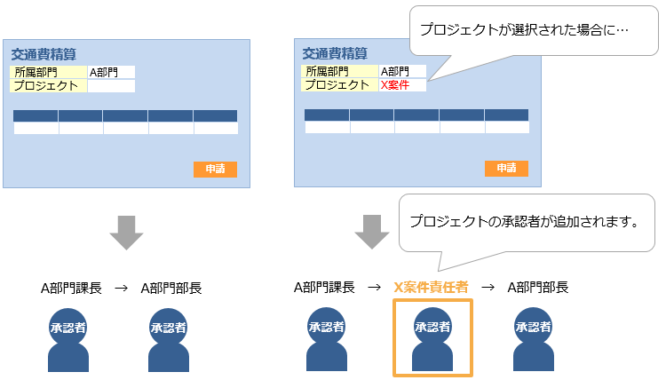 プロジェクトの選択に応じて、承認フローにそのプロジェクトの承認者を追加することができます。