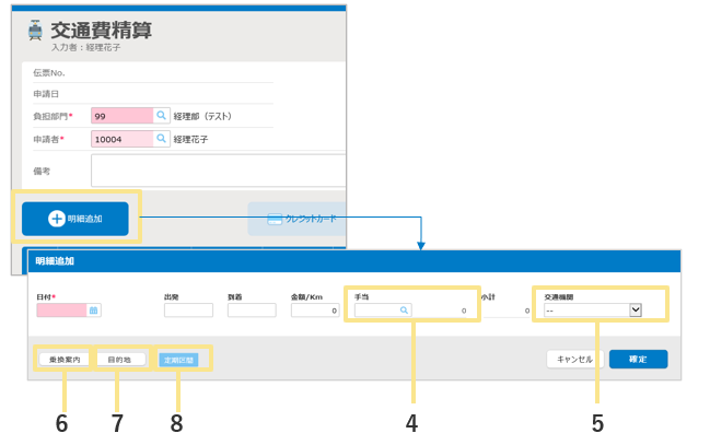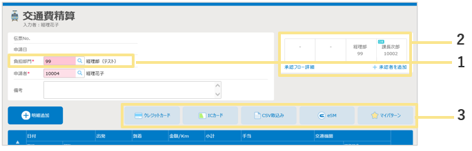 - 交通費の精算を行う画面です。