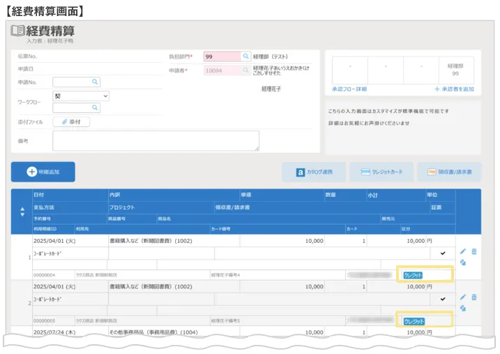 今回の機能追加により、「経費精算」に限り、1つのクレジットカード利用明細を