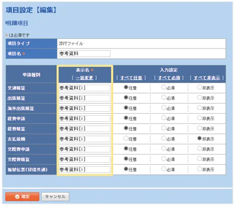 - 項目設定>▶申請画面の項目設定【編集】画面