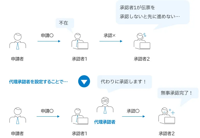 - 本来の承認者が不在の時などに急ぎ代理で承認する必要がある