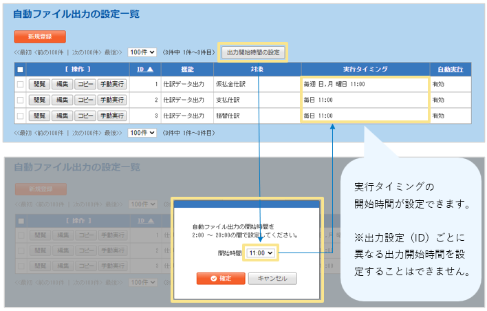 2.「API連携オプション」出力開始時間の設定機能を追加