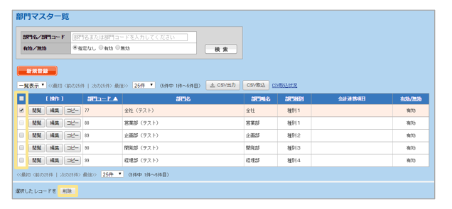 ■対象:「部門マスタ」「プロジェクトマスタ」など