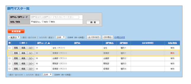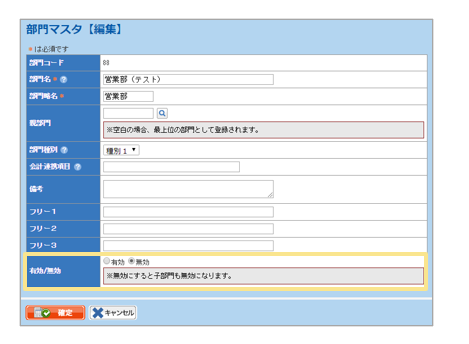 マスタによっては、削除では無く「有効」「無効」を切り替えられます。